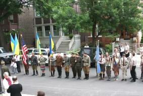 Цьогорічне Свято Героїв відрізнялося від попередніх ще й тим, що складалося з двох частин – урочистої ходи та концертної частини в школі св. отця Миколая. Саме урочиста хода проводилася вперше. В ній були презентовані військові формації українського вояцтва різних історичних періодів. На конях їхали славні козаки, маршував загін Української Повстанської Армії в уніформі повстанців та озброєний крісами на плечах із національними прапорами, і, врешті, українсько-американські ветерани з американським національним прапором. У врочистій ході брав участь оркестр та співоча група, молодіжні організації СУМ-у та Пласту, різні громадські організації зі своїми організаційними прапорами, та багато людей, які з радістю долучалися до урочистої ходи. В ході брало участь духовенство – отці, які будуть названі пізніше та о. Микола Бурядник із парафії св. Йосифа, що розташована поза містом Чикаго. Ходу супроводжували поліцейські авто, які зупиняли вуличний рух на головних вулицях, щоб гарантувати безпеку учасникам ходи. (Порівняйте поведінку американської поліції і української міліції під час демонстрації «Вставай, Україно»).