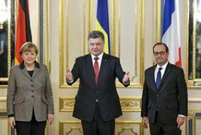Про хід перемовин двійки європейських лідерів з президентом Порошенком відомо на цей час небагато. Але витоки фрагментарної інформації дозволяють, все-таки, обережно сформулювати головне – на Україну, начебто, не тиснули, все обговорювали і ні до чого не силували. Готового плану у Меркель з Олландом, нібито, не було, і він народжувався у співпраці з Порошенком.